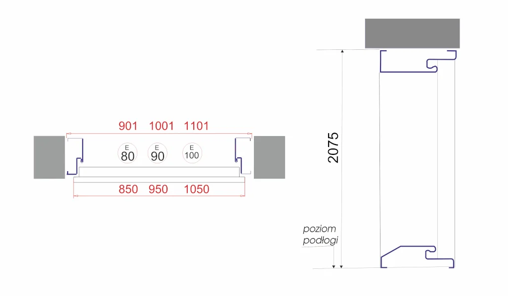 - Ościeżnica symetryczna o grubości 90mm